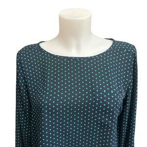 Ann Taylor Loft Navy Green Polka Dot Roll Tab Chiffon Longsleeve Blouse Small
