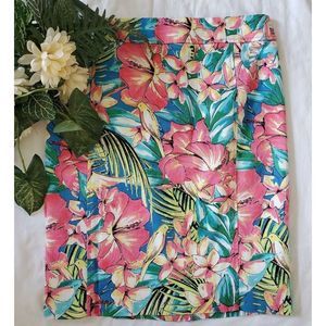 Ann Taylor Loft SZ 6 Pink Hawaii Theme Floral Pencil Skirt Colorful