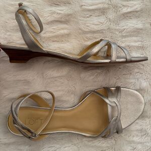 Ann Taylor Loft Silver Metallic Strappy Sandals