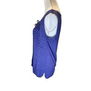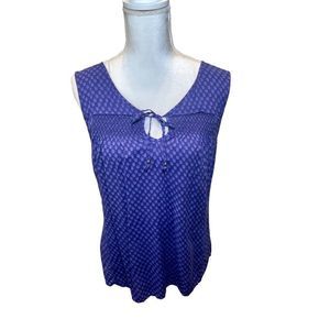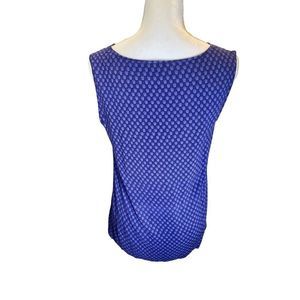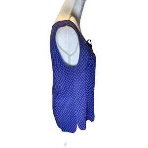 Ann Taylor Loft sleeveless top in a women’s Size Medium. Indigo Blue in color with a lighter blue pattern all over it. See photo for pic of pattern. Vneck that ties. Feels like rayon (care tags cut off). Very comfy. Item is Preloved and in good condition. Contact me with any questions.