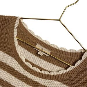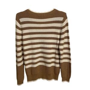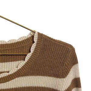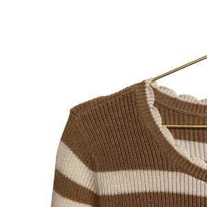 Ann Taylor Loft Striped Scalloped Neck Cotton Sweater White Tan Large NWT