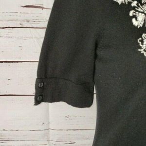 Ann Taylor loft small black with white flower button up cardigan sweater 100% cotton