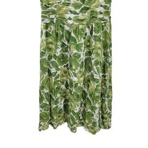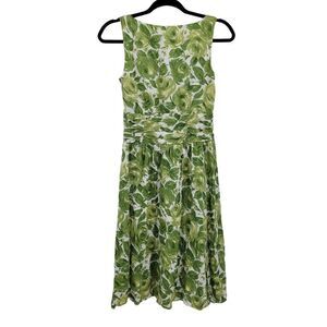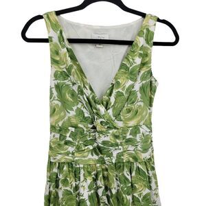 Ann Taylor Loft Dress Cotton Sleeveless Surplice Aline Floral Rosette Green Sz 4