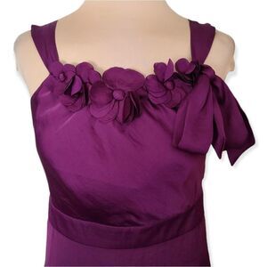 Ann Taylor Loft Purple Pink Cocktail Dress, floral fabric detail on top with bow on one shoulder, back zipper, lined.