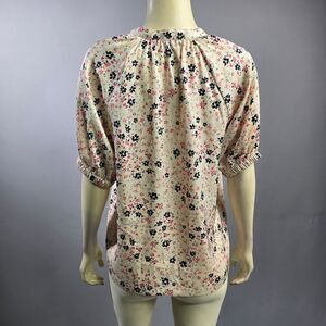 Ann Taylor Pink Floral Blouse with V-Neck and Short Sleeves R3