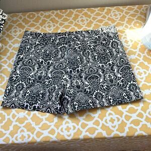 Ann Taylor Signature Shorts Size 10 Black White Damask Pattern 4.5" Inseam