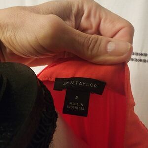 Whether you're dressing up for a special occasion or keeping it casual, this is the perfect top for you. Ann Taylor's sleeveless mixed-media v-neck tops are designed to flatter your figure and provide all-day comfort. Material is light and its relaxed fit lays well. The color isn't quite hot pink...more of a bright salmon color. Size medium, excellent condition.