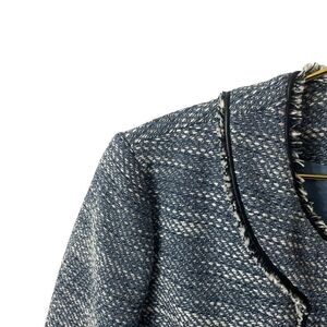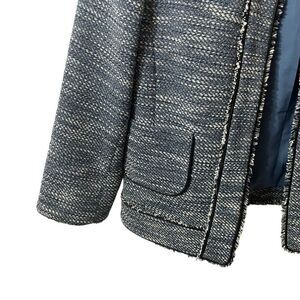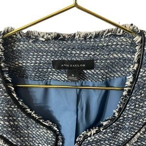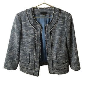 Ann Taylor Tweed Blue White Open Front Blazer Jacket Size 4