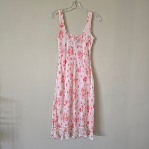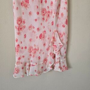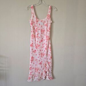 Ann Taylor Women's Pink Midi Dress Floral Print 100% Silk Size 4 Coquete Romantic Y2k