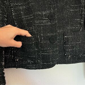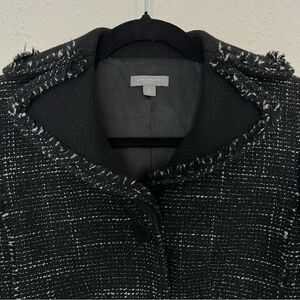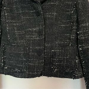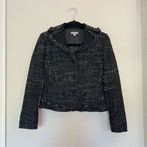 Ann Taylor Wool Blend Tweed Black Fringed Blazer Jacket Size 2 Petites