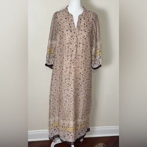 Ann Taylor XL Beige Plum Gold Lurex Paisley Floral Border Balloon Sleeve Dress