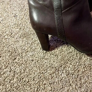 These boots are beautiful. Worn a handful of times. Have tiny flaws in side piping as seen in the pics. Otherwise perfect!