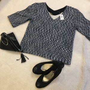 Super soft quilted NWT Ann Taylor Blue & White v-neck 3/4 sleeve top. Perfect for the office or a brunch date!