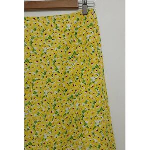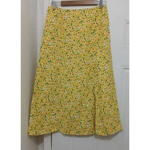 Ann Taylor womens size 4 linen viscose midi flare yellow green floral skirt