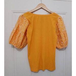Ann Taylor womens small puffer sleeve yellow eyelet top