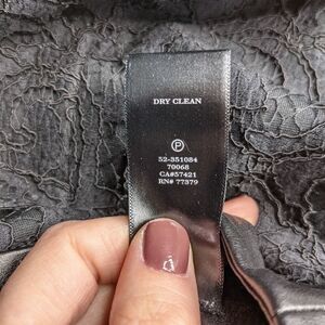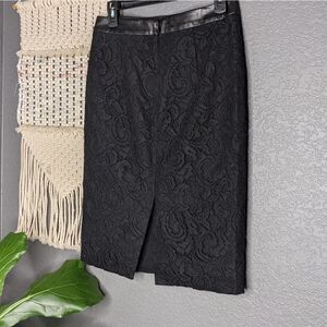 Ann Taylor black lace skirt with faux leather top and piping down the front. Very sleek and sophisticated look. Size 4 Tall.