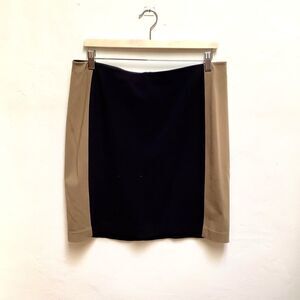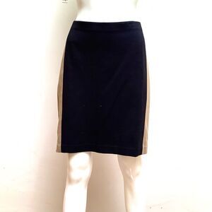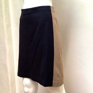 Great used condition! Stretchy and comfortable, but formal enough for work. Back zip closure. Slimming solid black sections on the front and back, with camel colored sides. Beautiful skirt!
