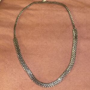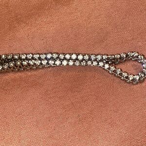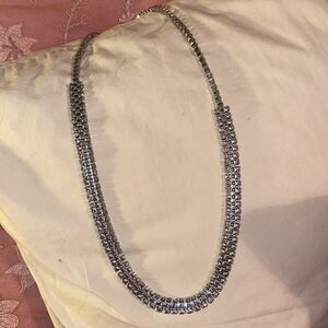 Crystals are on the sides which catch the light on this silver chain. Clasp closure