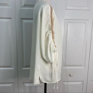 Ann Taylor Cream Semi Sheer Blouse Contrasting Fabric Stripe