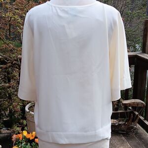 NWT Perfect classic top. Creamy white. Square shape. Wide sleeves. Bottom hem is double so this Lausanne perfectly. Size L measures 46 at chest, 46 at bottom hem. 23.5 long from shoulder to hem. This will be your go-to top for work.