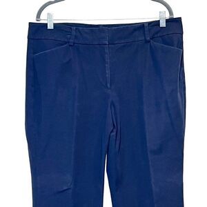 Ann Taylor Factory navy blue signature pants size 14. Lots of stretch. Good condition. 95% cotton 5% spandex. Waist 18” Rise 11.5” Inseam 32”.