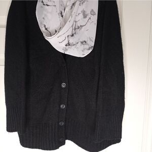 I decorated this cardigan with light scarf : classic colors black and white. Price will include scarf too.