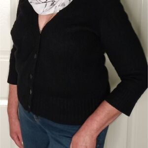 Ann Taylor L BlackWoolModalBlend 3/4 SleeveV-neckKnittedButtonUp Women'sCardigan