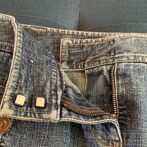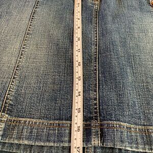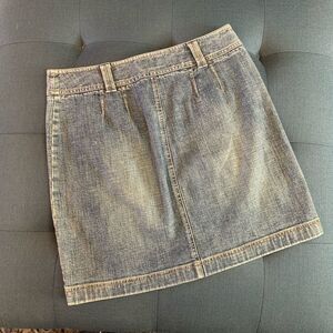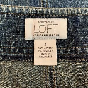 Ann Taylor LOFT stretch denim mini. Two front pockets with button-tab closure. Double clasp and zip fly. 17” from waist to hem. Never worn.