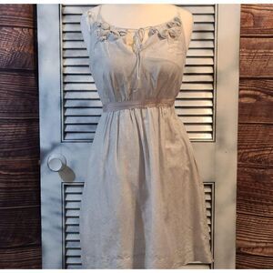 Gorgeous sundress from Ann Taylor LOFT. Size 0. Floral accents on keyhole collar. Fully lined. Ribbon accent waist. Side zip. 70% cotton, 30% silk. Lining 100% cotton. Hand wash. Made in China. Excellent preowned condition. Nonsmoking home.