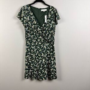 Ann Taylor Loft green ditsy mini floral bouquet v neck faux wrap dress