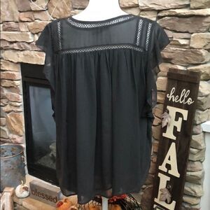 Ann Taylor Loft charcoal grey ruffle sleeve blouse
