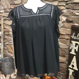 Beautiful Ann Taylor Loft charcoal grey blouse. Has ruffled sleeves. Size small. Great condition. Pairs great with slacks or jeans. Very comfortable shirt.
