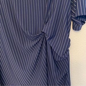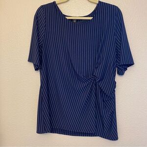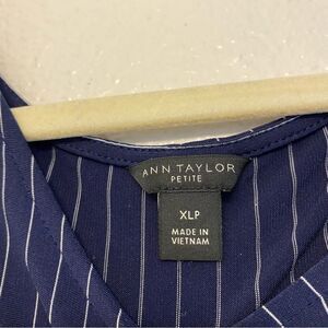 Ann Taylor Petite Navy Short Sleeve Top blouse stripe stretchy gathered knot XLP