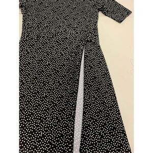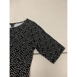 Ladies super cute black and white 3/4 sleeve polka dot patterned wrap style dress by Ann Taylor. Excellent condition. Ladies size 6. Material is very stretchy. Measurements are for the garment unstretched.