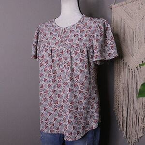 Ann Taylor | Short Sleeve Flutter Printed Blouse