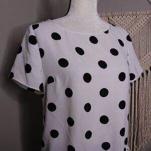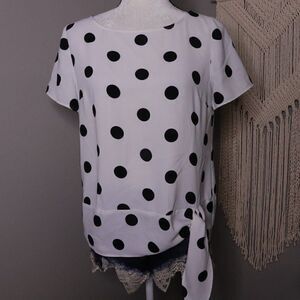 Ann Taylor | Short Sleeve Polka Dot Tie Blouse