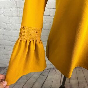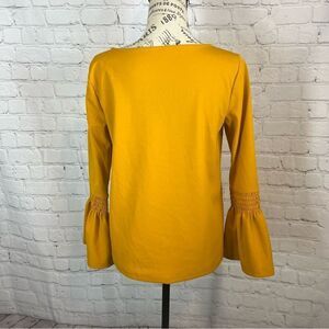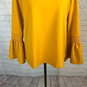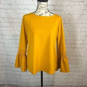 Ann Taylor Smocked Bell-Sleeve Boat Neck Top Size XSP Mustard