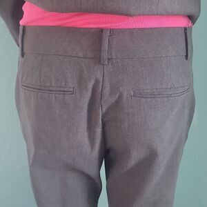 Ann Taylor suit trousers in gray, size 8P. Button and two slide closures above zipper. Two front pockets and two back pockets. Excellent used condition from smoke free home. Measurements in photos. Matching suit jacket sold separately.