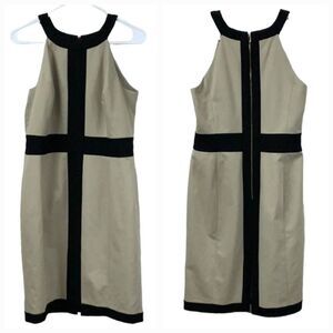 Ann Taylor Tan/Black Tailored Colorblock Sheath Dress Sleeveless Work Classy 6