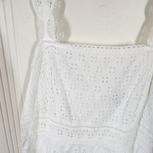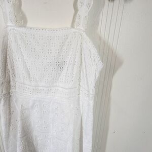 Ann Taylor white sleeveless cut out dress. Size 8 petite. 100% cotton. Fully lined. Zips up in the back.