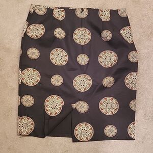 excellent condition no flaws. black cotton blend skirt with design. size 6. lined . zipper in back