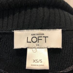 Ann Taylor black sweater shrug. Roused on bottom, herringbone design throughout. X small/ small. Great condition. Sleeve 21in, pit to pit 25in, length 24in.