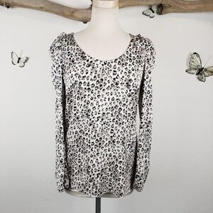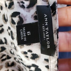 Neutral cheetah print fashion forward blouse has fitted long sleeves and exaggerated structured puff sleeves. Nothing crazy just enough to make a statement. Exposed contrasting zipper in back