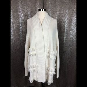 Ann Taylor fringe cardigan sweater cream medium