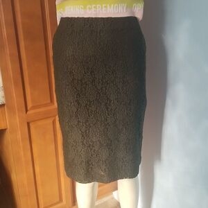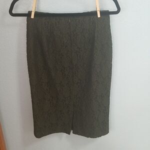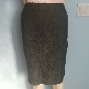 Beautiful soft green lace over matching colored lining. Zipper and eye hook in tact and work well. Smoke free home. Pictures don't even begin to do this justice.