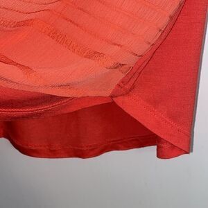 Ann Taylor short sleeve texture front shell in coral orange. Super pretty color. Scoop neck. Front is lined and a bit longer than back. Great worn alone or under a cardigan or jacket for work. About 19 inches from under one arm to the other. About 26 inches from shoulder seam to hem. Has a little stretch on the back but not the front. Excellent used condition. Bundle to save.