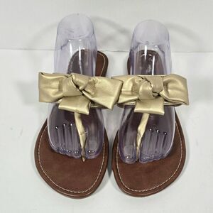 Anna & Ava Faux Leather Sandals Gold Bows Women's Size 9 Brown Romantic Coquette