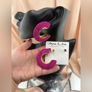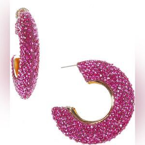 Make a bold statement with these stunning crescent hoop earrings from Anna & Ava. Encrusted with vibrant pink crystals and accented with gold-tone details, these earrings bring a touch of glamour to any outfit.
