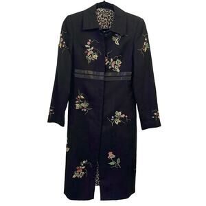 Anna Bui Gallery Floral Embroidered Coat Womens XS Black Suede Evening Formal