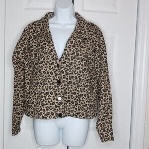Leopard print cropped button up jacket from Anna Cai New York in excellent, like new condition with no flaws.